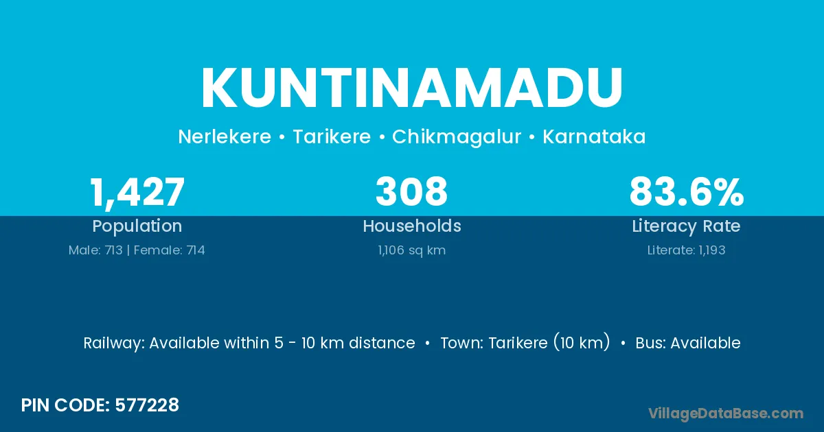 Tarikere (10 km) is the nearest town to Kuntinamadu village for major economic activities and is located approximately 10 km away.