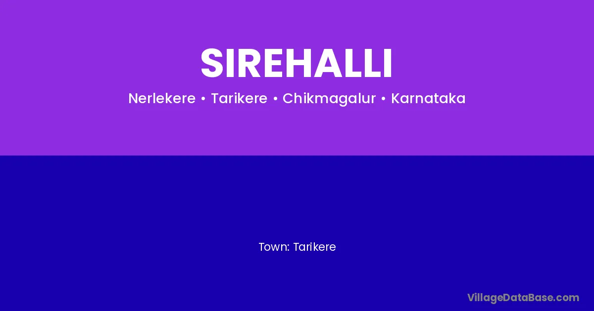 Tarikere is the nearest town to Sirehalli village for major economic activities