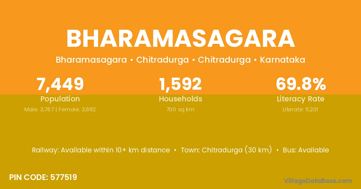 Challakere (7 km) is the nearest town to Bharamasagara village for major economic activities and is located approximately 7 km away.