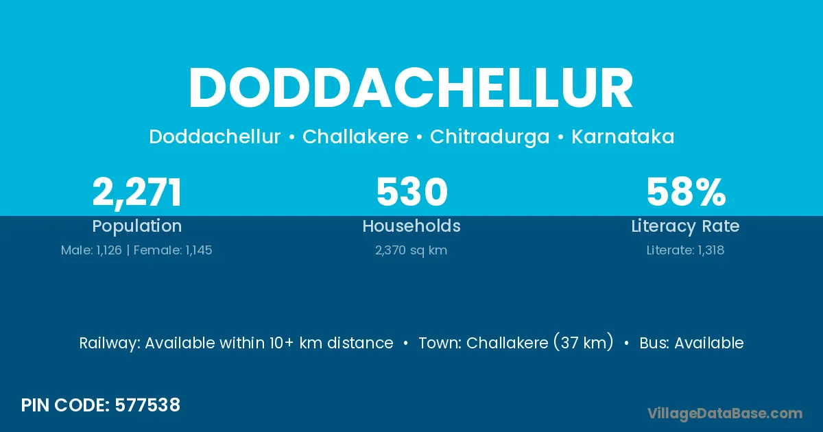 Challakere (37 km) is the nearest town to Doddachellur village for major economic activities and is located approximately 37 km away.