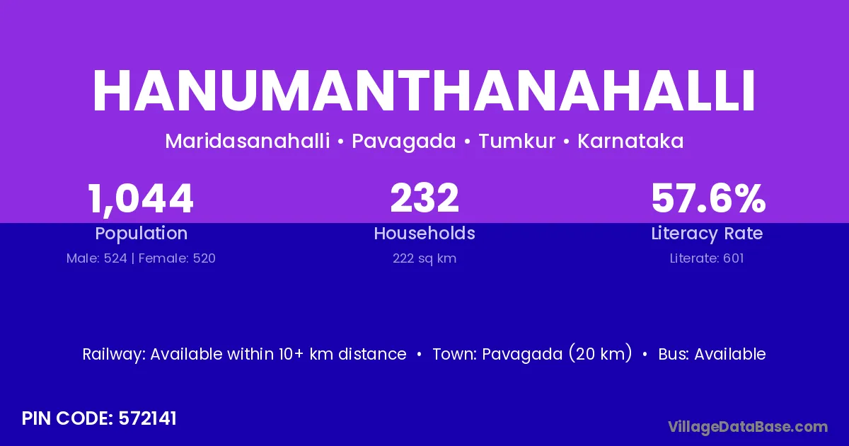 Hanumanthanahalli village has a total population of 1,963 people, of which 992 are males and 971 are females.