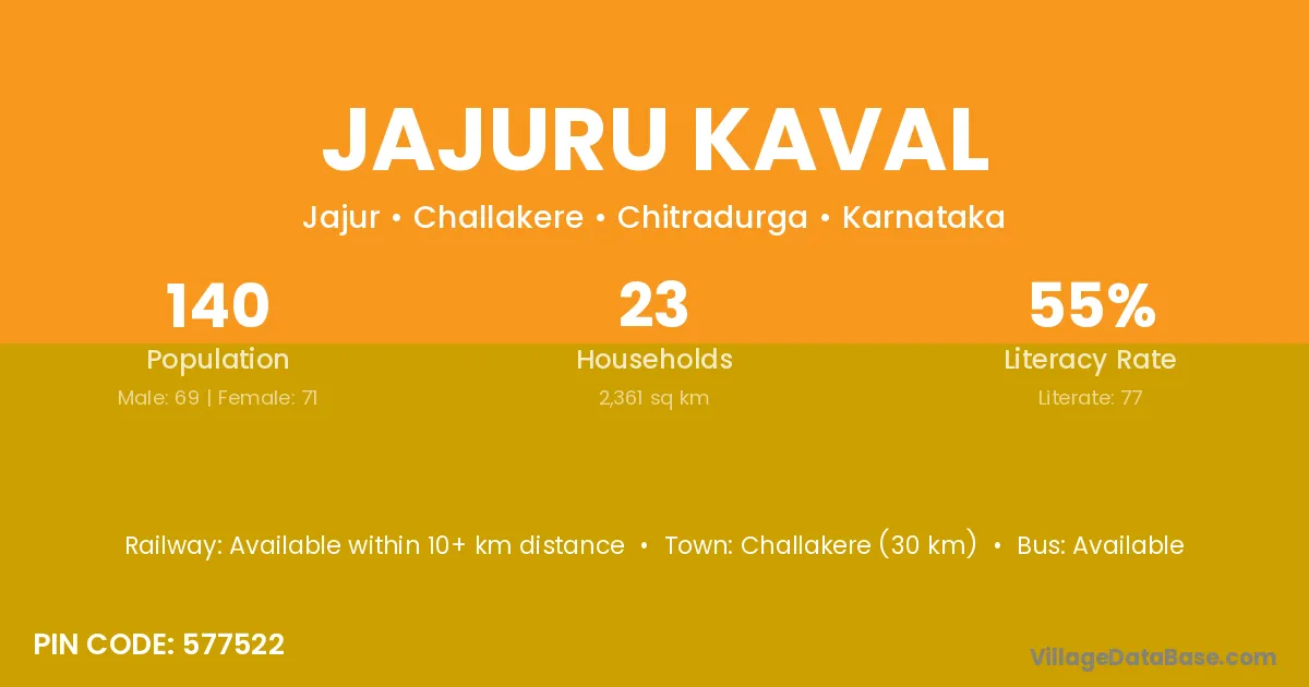 Challakere (30 km) is the nearest town to Jajuru Kaval village for major economic activities and is located approximately 30 km away.