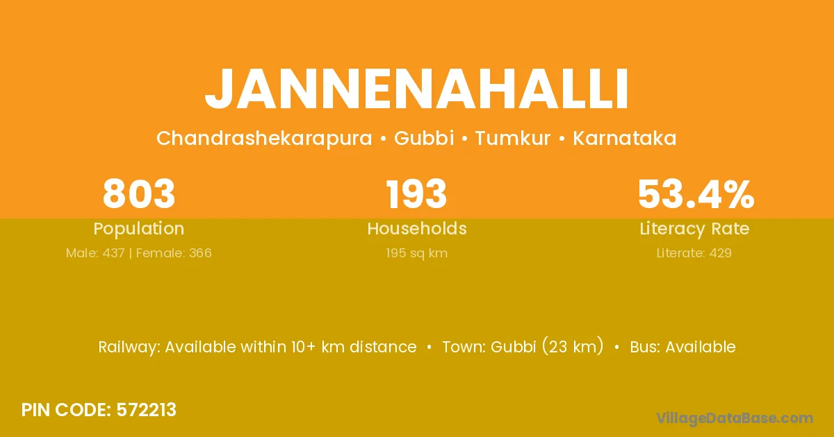 Challakere (15 km) is the nearest town to Jannenahalli village for major economic activities and is located approximately 15 km away.