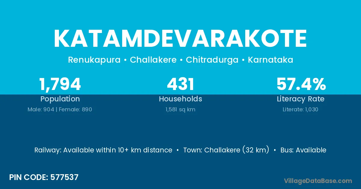 Challakere (32 km) is the nearest town to Katamdevarakote village for major economic activities and is located approximately 32 km away.