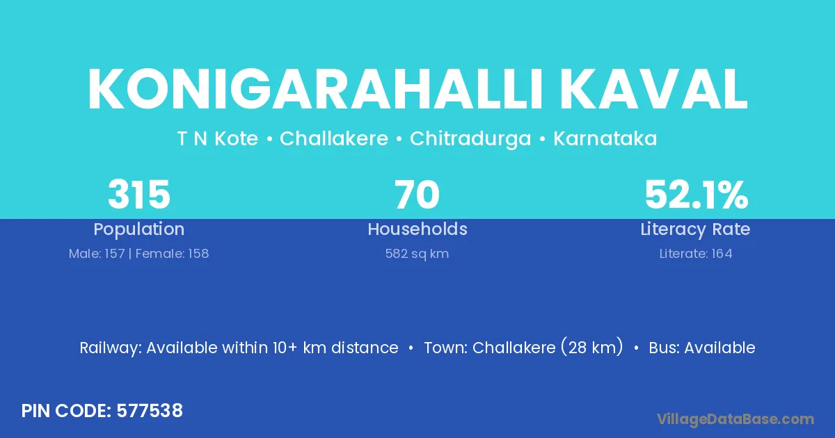 Konigarahalli Kaval village has a total population of 315 people, of which 157 are males and 158 are females.