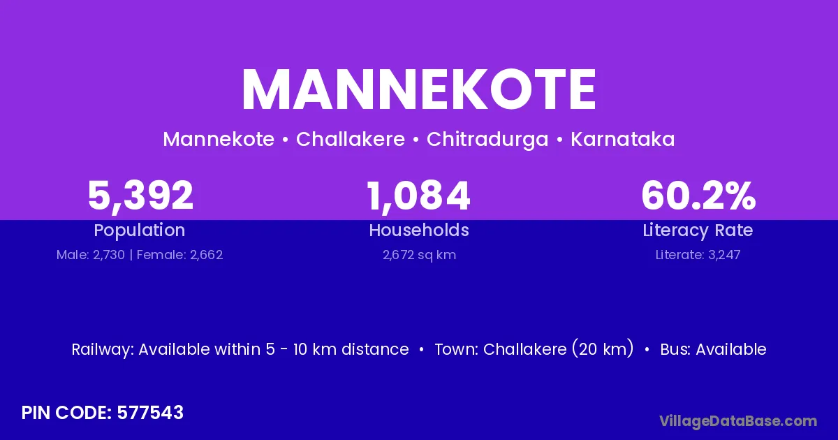 Challakere (20 km) is the nearest town to Mannekote village for major economic activities and is located approximately 20 km away.
