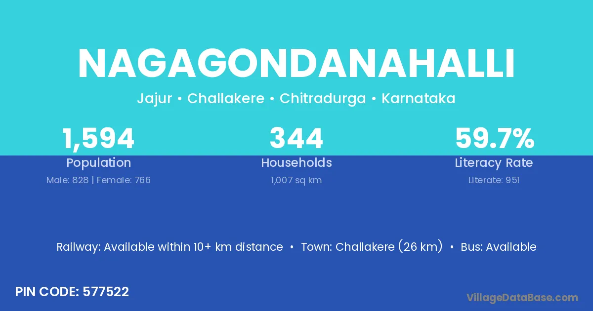 Challakere (26 km) is the nearest town to Nagagondanahalli village for major economic activities and is located approximately 26 km away.