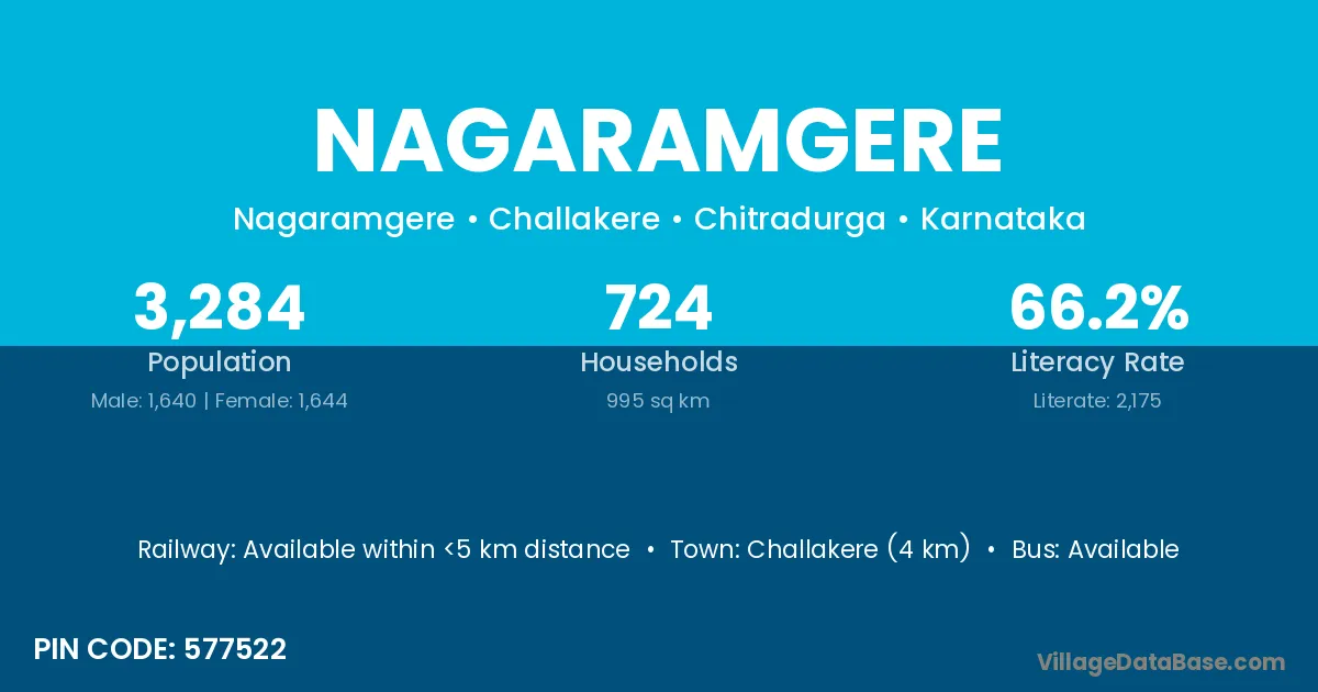 Challakere (4 km) is the nearest town to Nagaramgere village for major economic activities and is located approximately 4 km away.