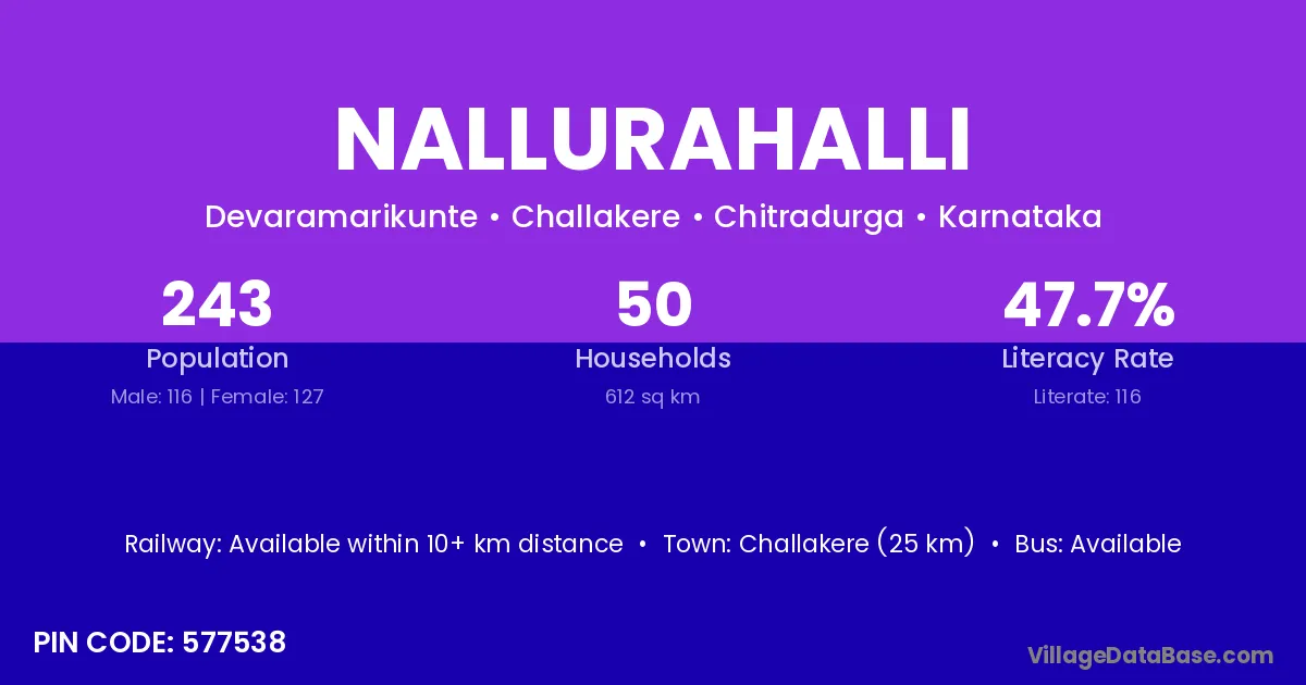 Nallurahalli village has a total population of 243 people, of which 116 are males and 127 are females.
