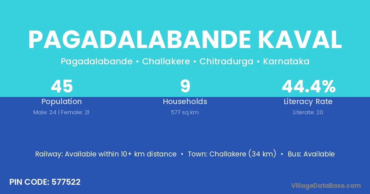 Pagadalabande Kaval village has a total population of 45 people, of which 24 are males and 21 are females.