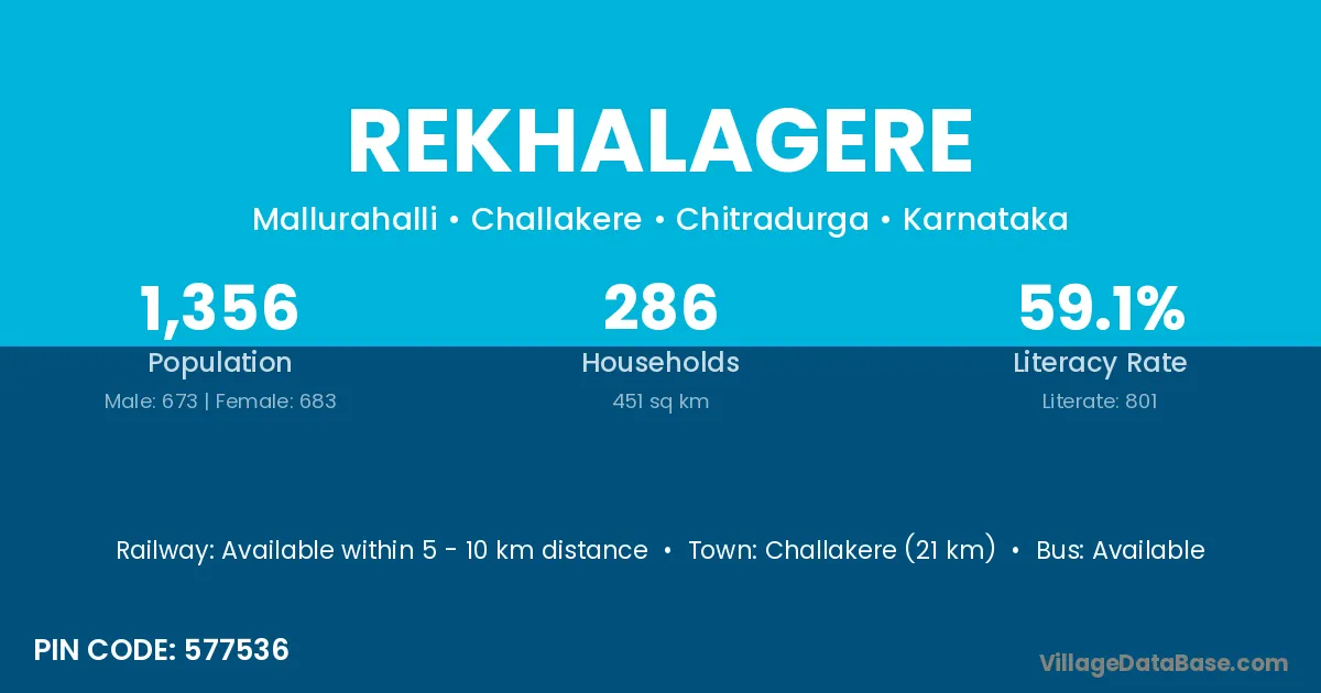 Challakere (21 km) is the nearest town to Rekhalagere village for major economic activities and is located approximately 21 km away.