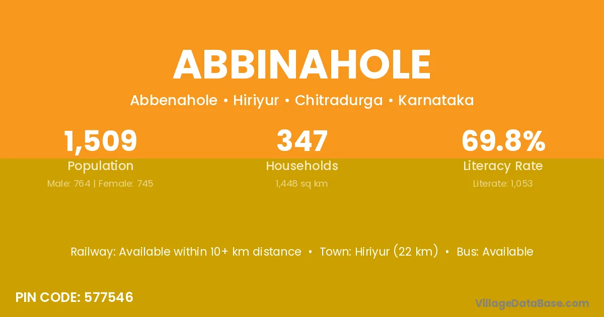 Abbinahole village has a total population of 1,509 people, of which 764 are males and 745 are females.