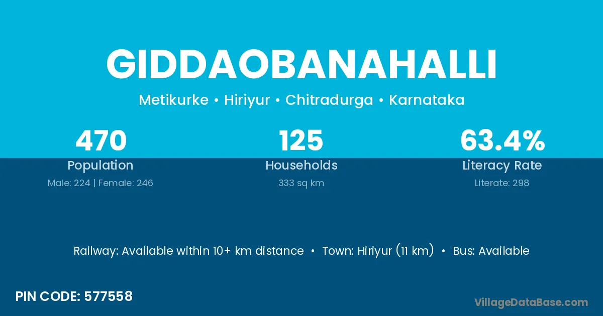 Giddaobanahalli village has a total population of 470 people, of which 224 are males and 246 are females.