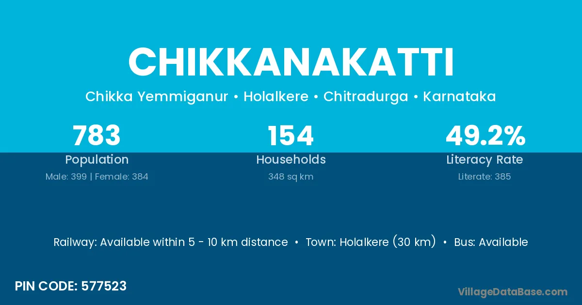 Holalkere (30 km) is the nearest town to Chikkanakatti village for major economic activities and is located approximately 30 km away.