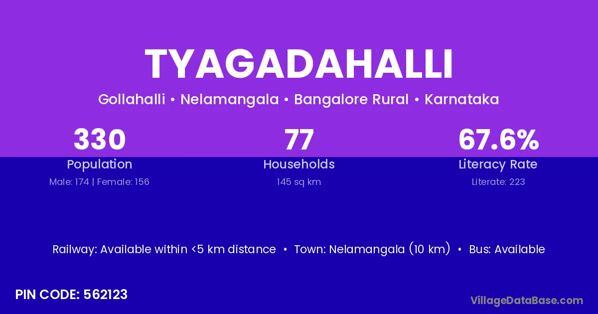 Holalkere is the nearest town to Tyagadahalli village for major economic activities
