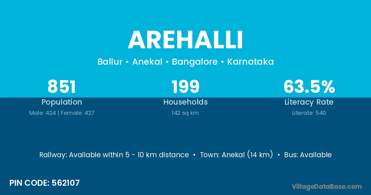 Arehalli village has a total population of 1,748 people, of which 892 are males and 856 are females.