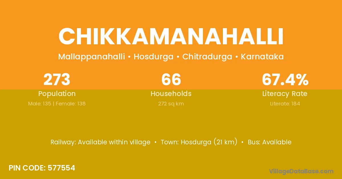 Chikkamanahalli village has a total population of 273 people, of which 135 are males and 138 are females.