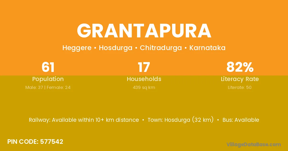 Hosdurga (32 km) is the nearest town to Grantapura village for major economic activities and is located approximately 32 km away.