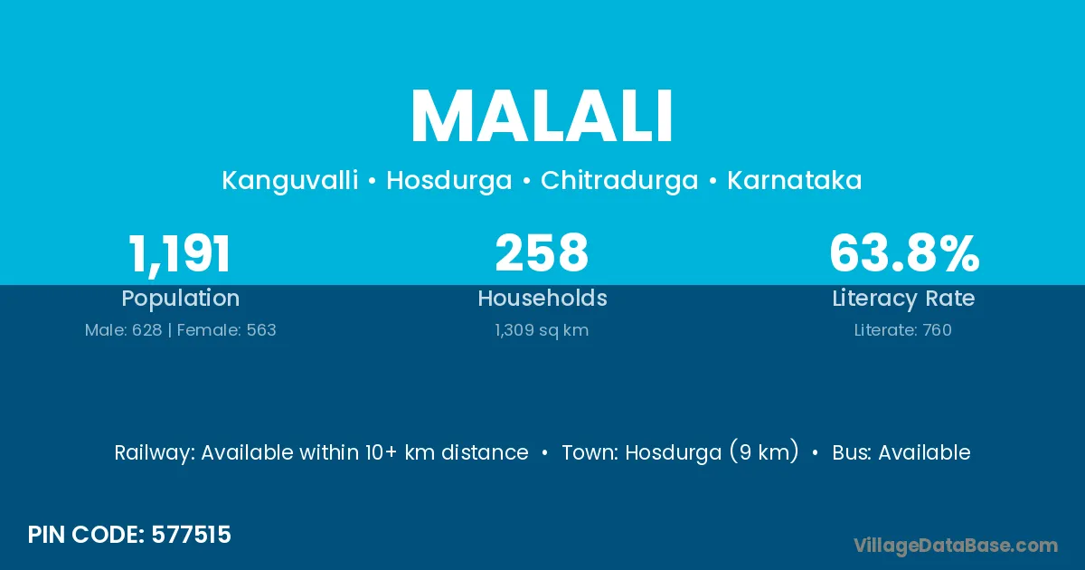 Hosdurga (9 km) is the nearest town to Malali village for major economic activities and is located approximately 9 km away.