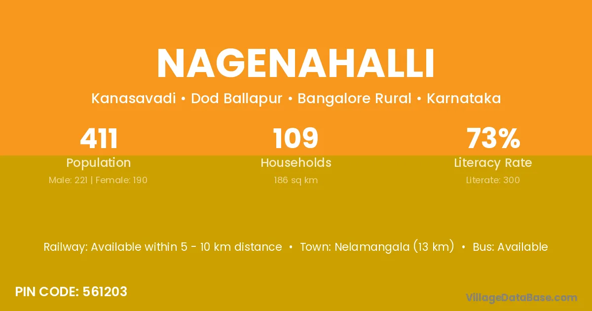Hosdurga (8 km) is the nearest town to Nagenahalli village for major economic activities and is located approximately 8 km away.