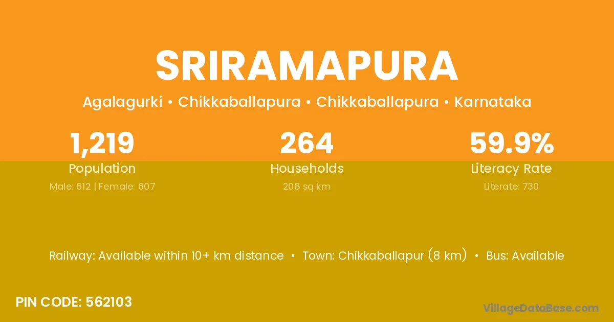 Hosdurga (25 km) is the nearest town to Sriramapura village for major economic activities and is located approximately 25 km away.