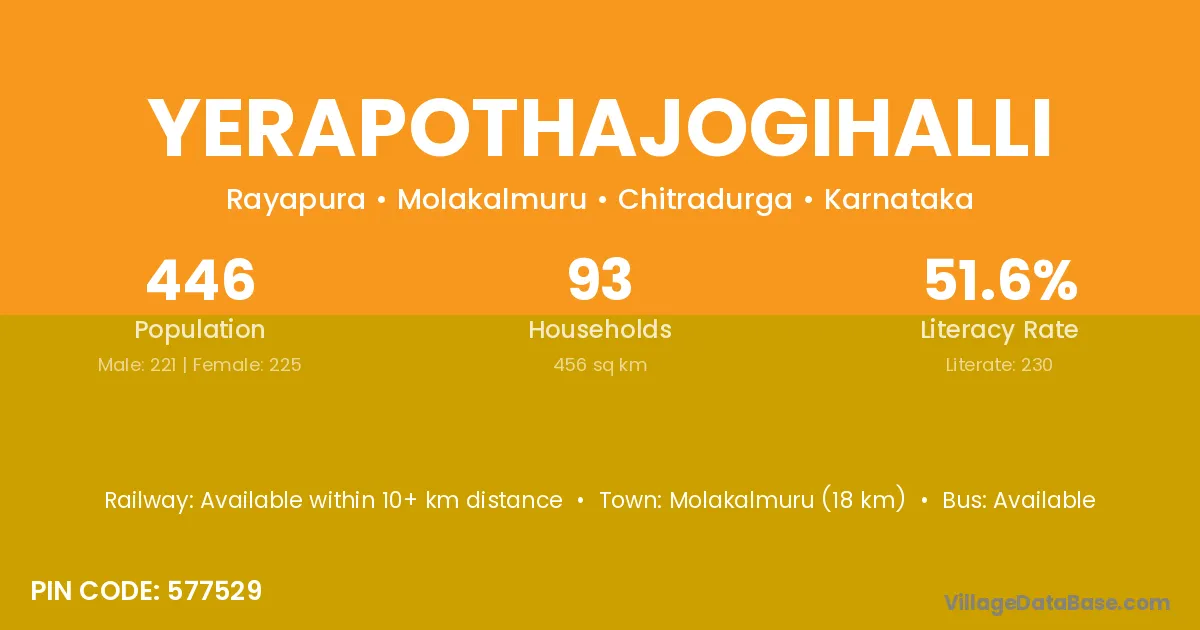 Yerapothajogihalli village has a total population of 446 people, of which 221 are males and 225 are females.
