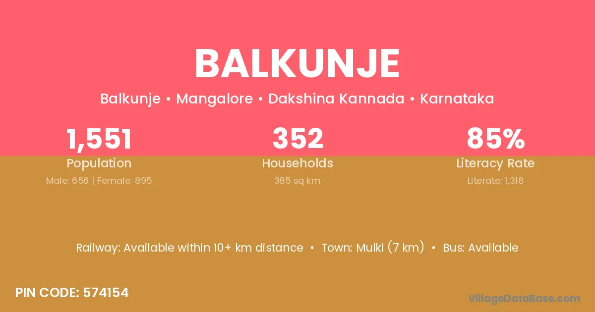 Mulki (7 km) is the nearest town to Balkunje village for major economic activities and is located approximately 7 km away.