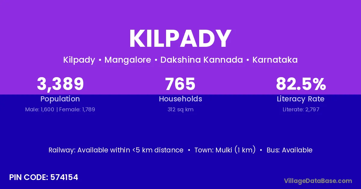 Mulki (1 km) is the nearest town to Kilpady village for major economic activities and is located approximately 1 km away.