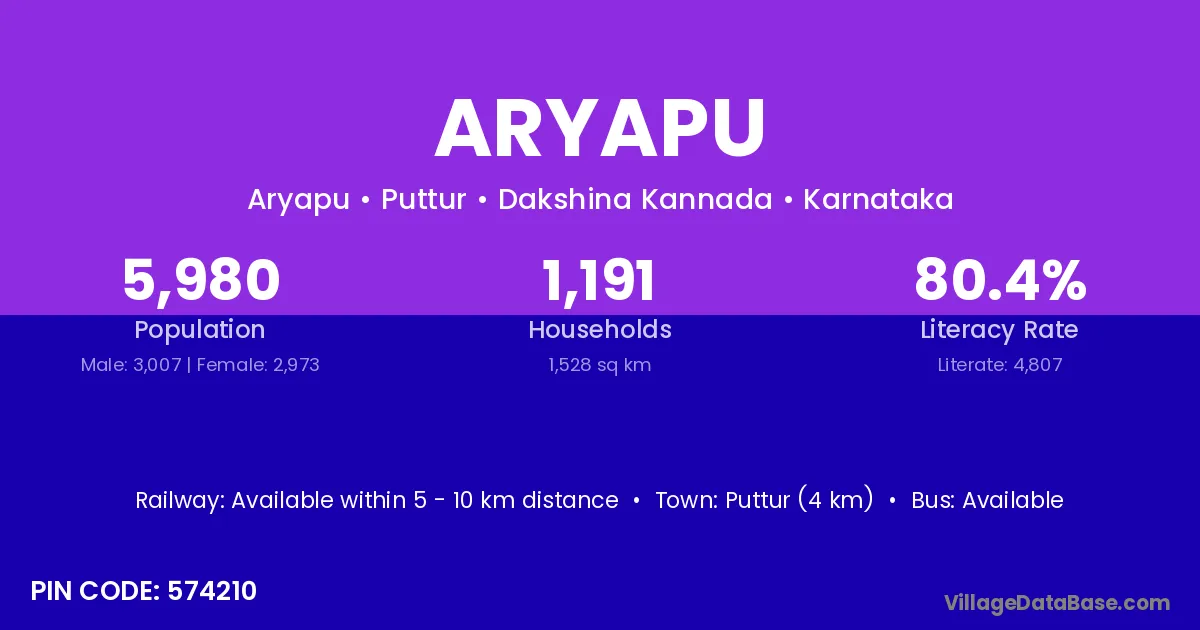 Puttur (4 km) is the nearest town to Aryapu village for major economic activities and is located approximately 4 km away.