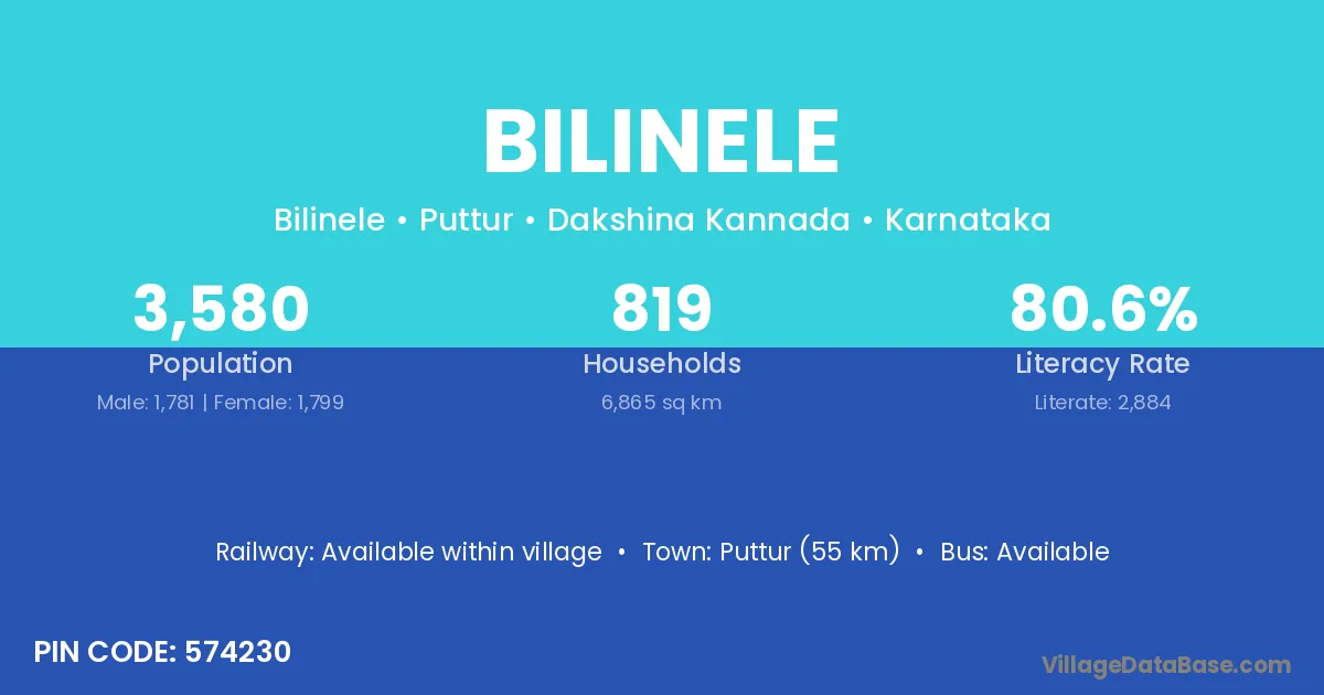 Puttur (55 km) is the nearest town to Bilinele village for major economic activities and is located approximately 55 km away.