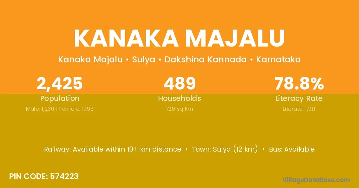 Sulya (12 km) is the nearest town to Kanaka Majalu village for major economic activities and is located approximately 12 km away.