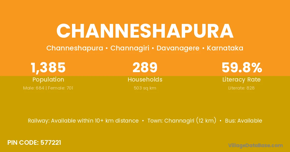 Channeshapura village has a total population of 1,385 people, of which 684 are males and 701 are females.