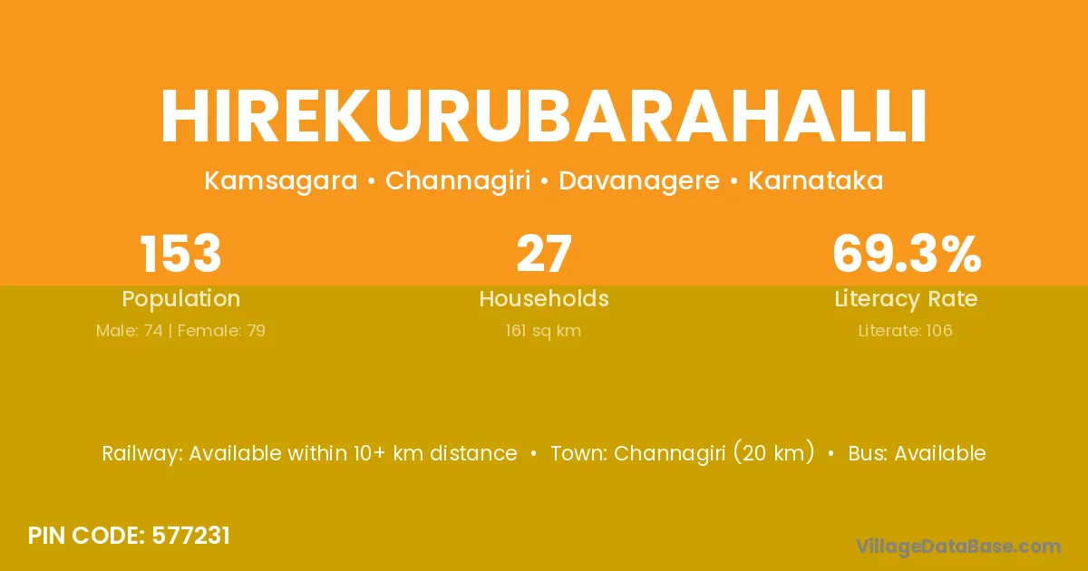 Hirekurubarahalli village has a total population of 153 people, of which 74 are males and 79 are females.