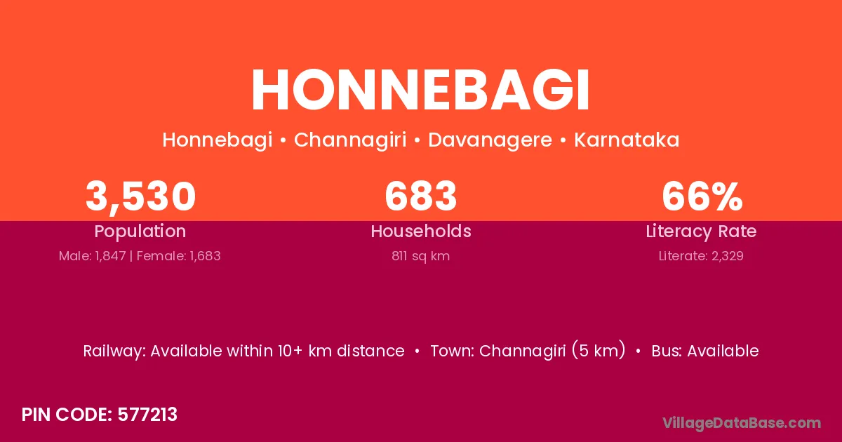 Honnebagi village has a total population of 3,530 people, of which 1,847 are males and 1,683 are females.