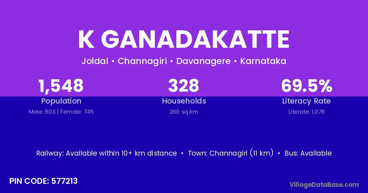K Ganadakatte village has a total population of 1,548 people, of which 803 are males and 745 are females.