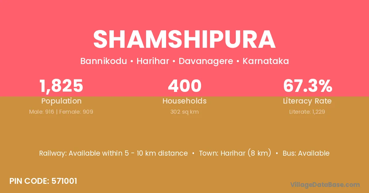 Harihar (8 km) is the nearest town to Shamshipura village for major economic activities and is located approximately 8 km away.