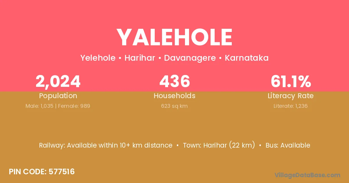 Harihar (22 km) is the nearest town to Yalehole village for major economic activities and is located approximately 22 km away.
