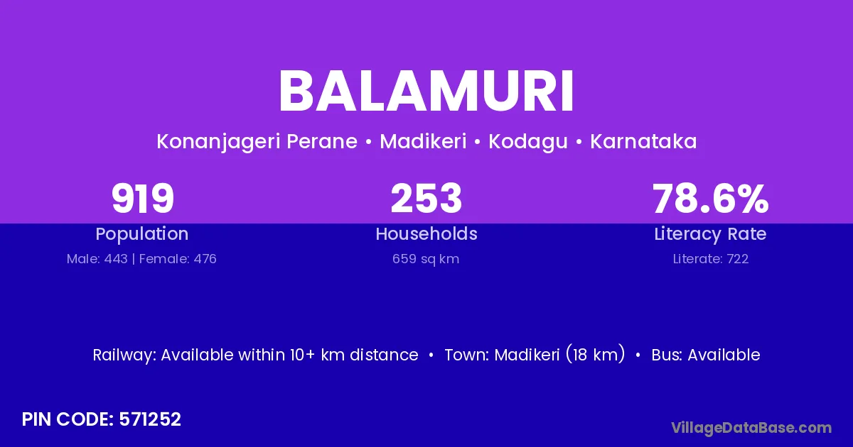 Honnali (6 km) is the nearest town to Balamuri village for major economic activities and is located approximately 6 km away.