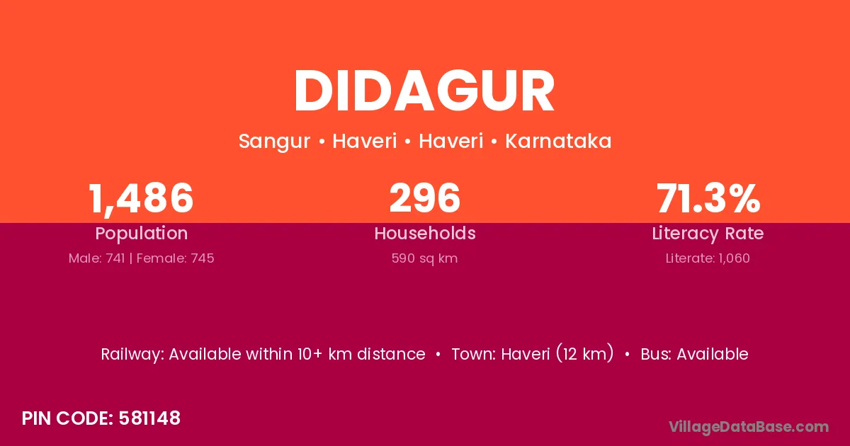 Honnali (5 km) is the nearest town to Didagur village for major economic activities and is located approximately 5 km away.