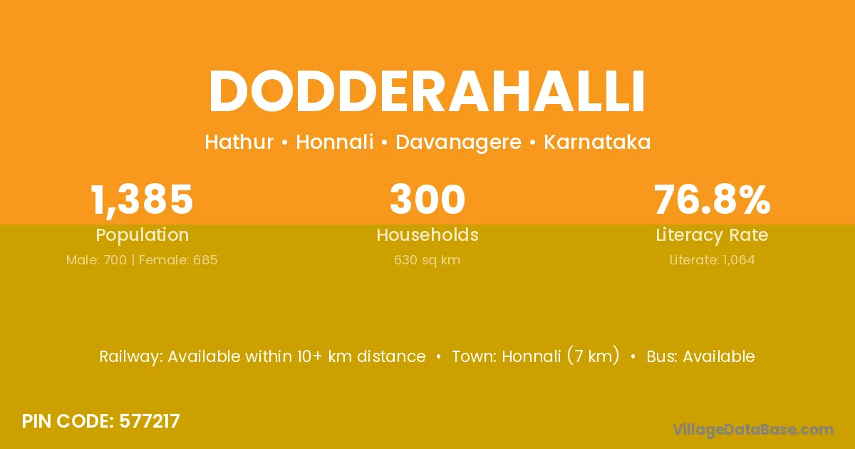 Honnali (7 km) is the nearest town to Dodderahalli village for major economic activities and is located approximately 7 km away.