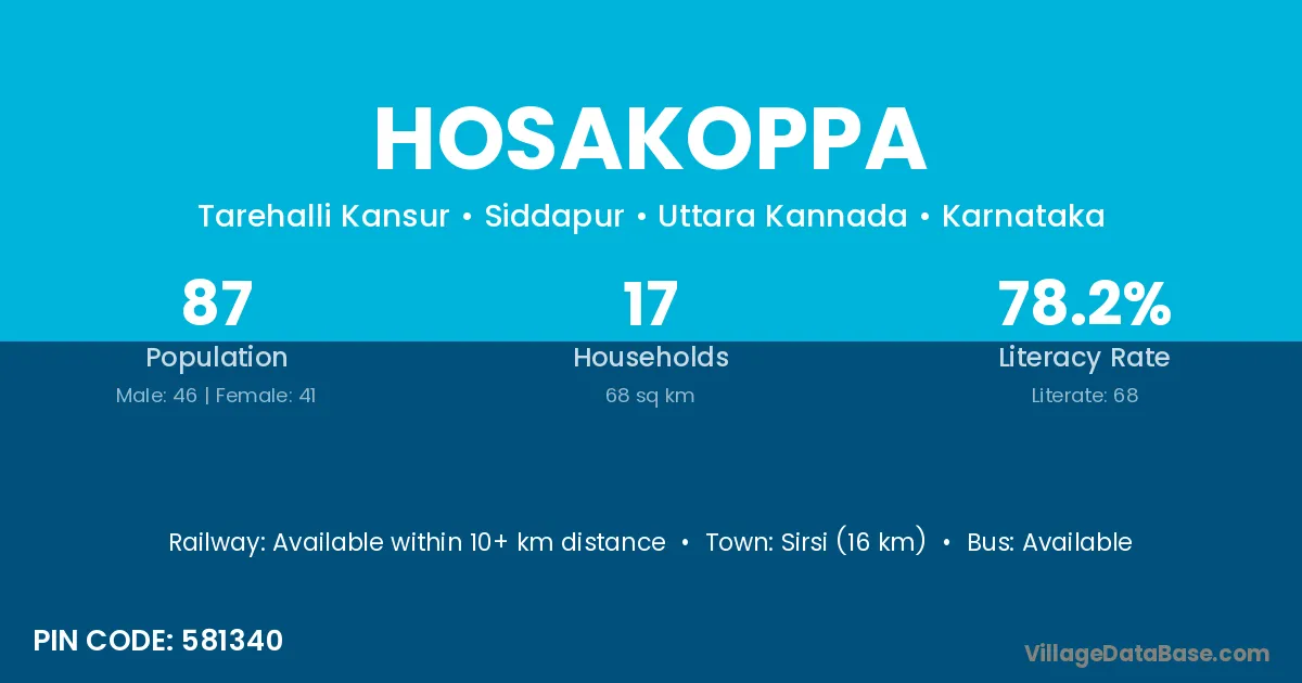Honnali (18 km) is the nearest town to Hosakoppa village for major economic activities and is located approximately 18 km away.