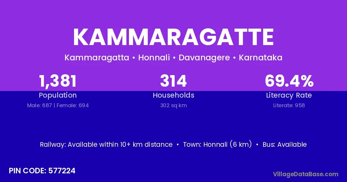 Honnali (6 km) is the nearest town to Kammaragatte village for major economic activities and is located approximately 6 km away.