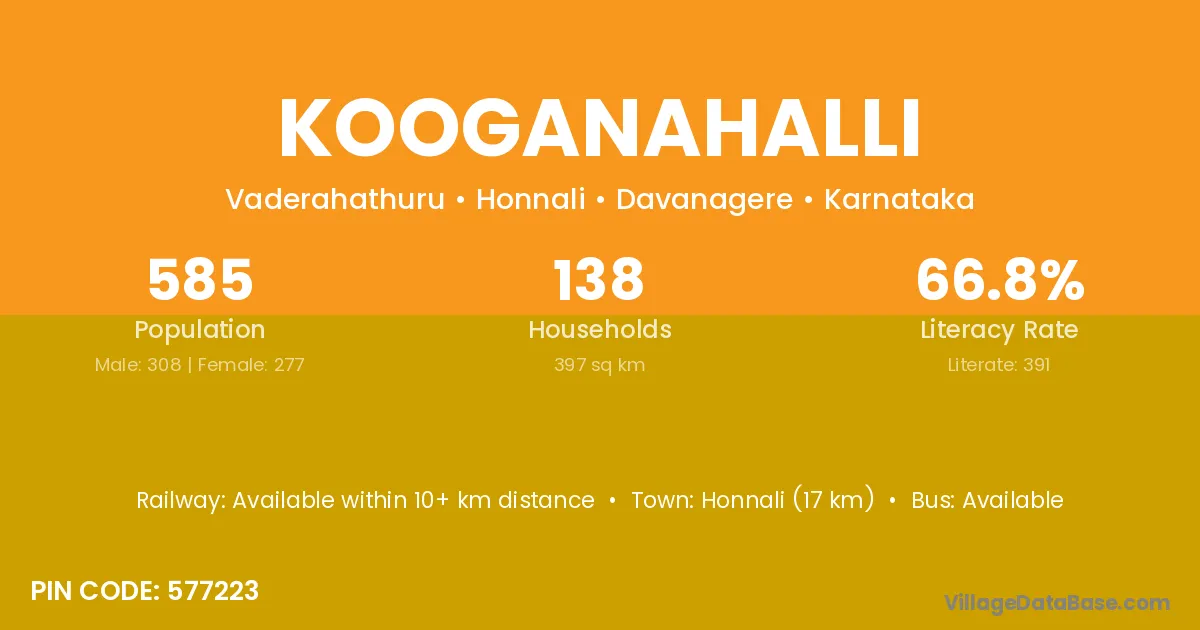 Kooganahalli village has a total population of 585 people, of which 308 are males and 277 are females.
