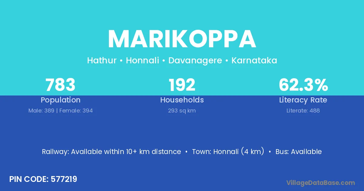 Honnali (4 km) is the nearest town to Marikoppa village for major economic activities and is located approximately 4 km away.