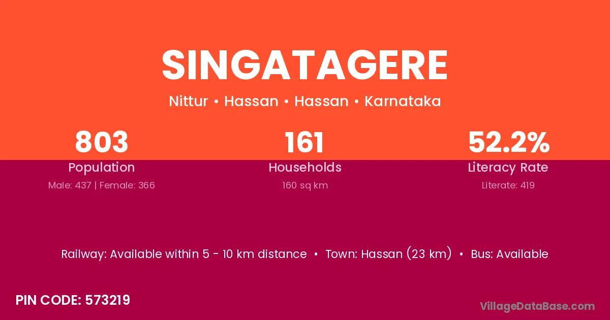 Singatagere village has a total population of 1,051 people, of which 543 are males and 508 are females.