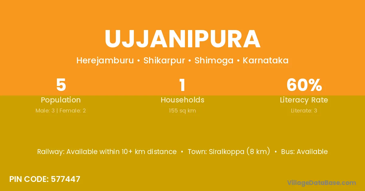 Honnali (16 km) is the nearest town to Ujjanipura village for major economic activities and is located approximately 16 km away.