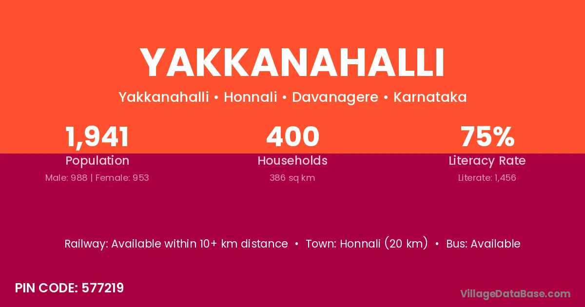 Honnali (20 km) is the nearest town to Yakkanahalli village for major economic activities and is located approximately 20 km away.