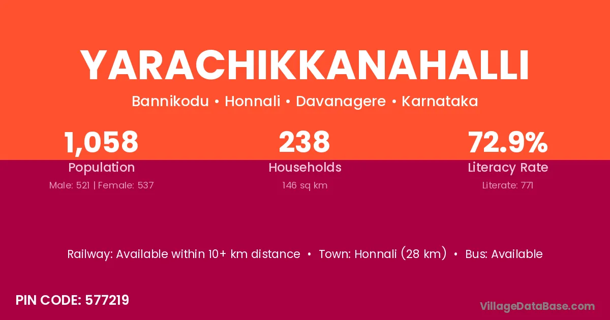 Yarachikkanahalli village has a total population of 1,058 people, of which 521 are males and 537 are females.