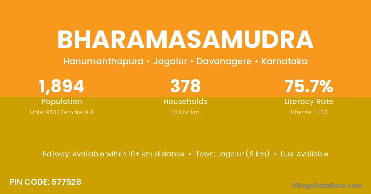 Jagalur (6 km) is the nearest town to Bharamasamudra village for major economic activities and is located approximately 6 km away.