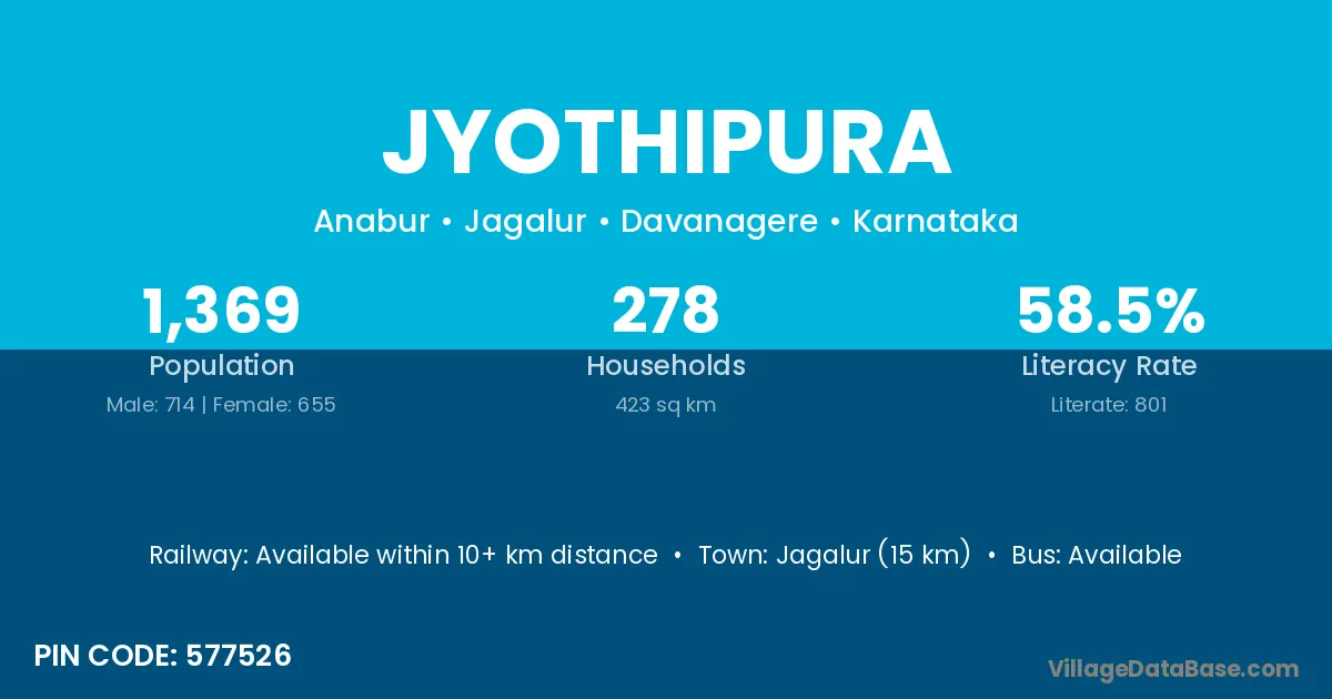 Jagalur (15 km) is the nearest town to Jyothipura village for major economic activities and is located approximately 15 km away.